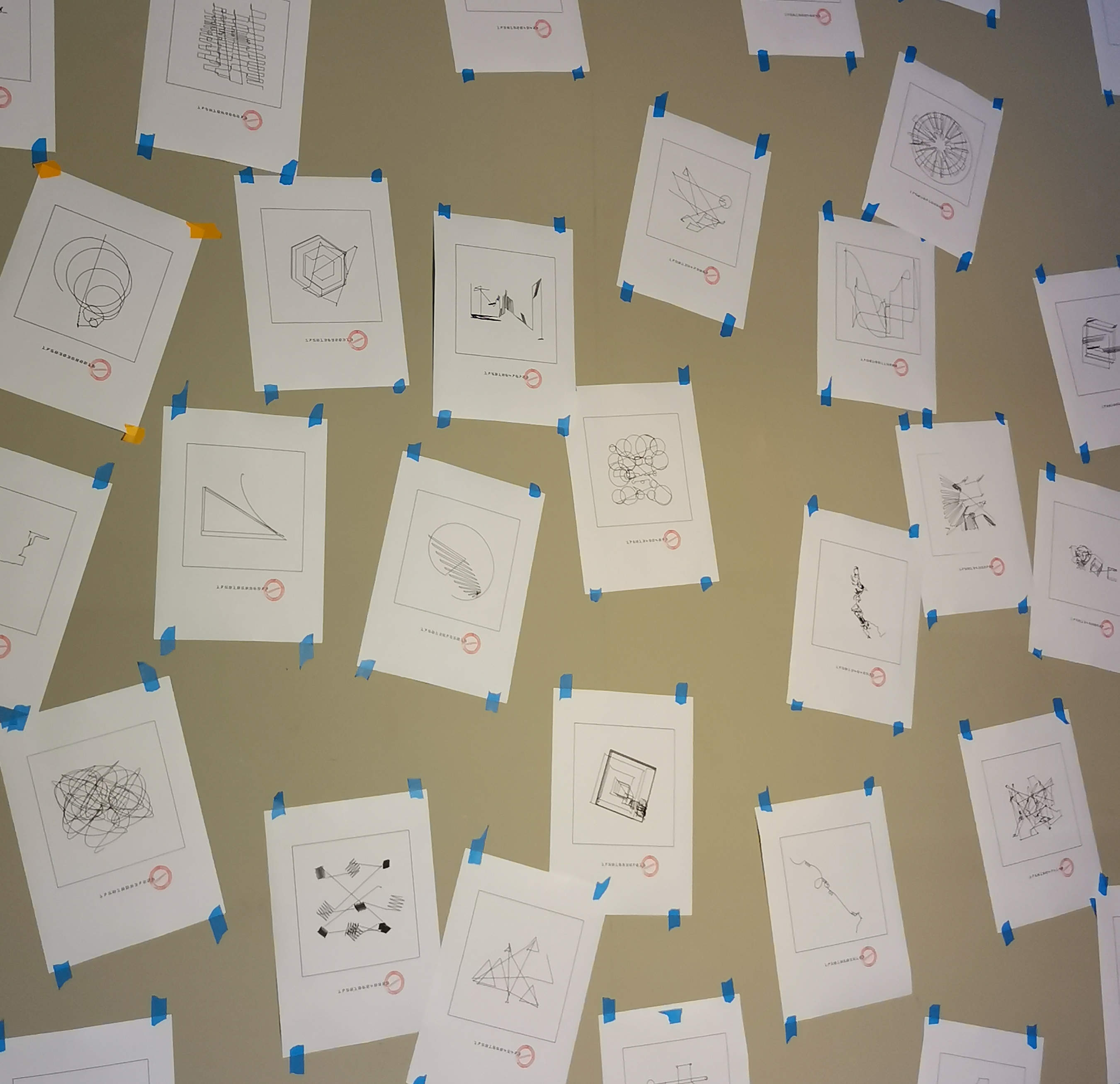 Each interaction with the installation produces a different result, as no two drawings are identical. The uniqueness stems from the algorithm's use of the UNIX/Epoch time as a seed variable. This ensures that every interaction with the installation creates a distinct piece.