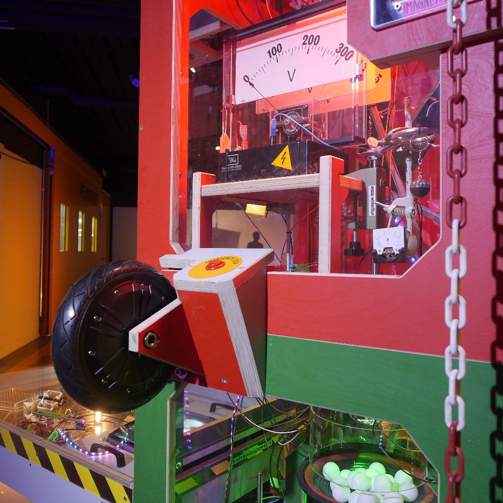 In November 2022, Swiss science center Technorama invited me for a month-long artist residency. The center's hands-on exhibition about electricity and magnetism is about to be re-made and I was tasked with developing ideas and building prototypes for new exhibits. During the first two weeks of the residency, I had already made the “Deflektron”, which was an ideal starter to become familiar with the big workshop and all the tools and materials. After that, I wanted to build more freestyle and I came up with the idea for the Visitors Magnet.