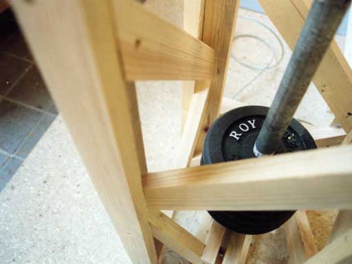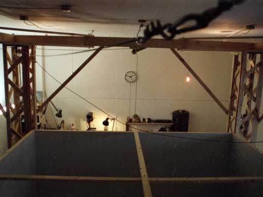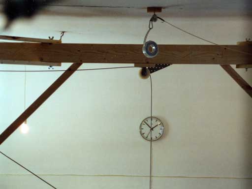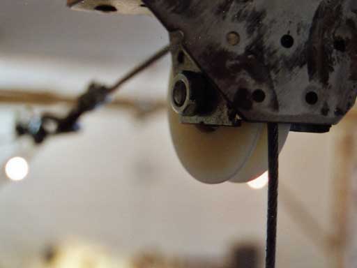 Slightly later, I took that photo. The winch on the ceiling is from an older project and has nothing to do with the room. But on the wood beam in the back, you can see another pulley support, which prevents the pulley from bending to the left. |